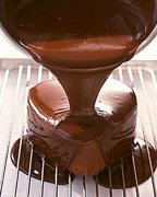 3. Cool the glacage to 75°F--Once it’s sufficiently cool, pour it through a fine-meshed sieve placed close to the surface of the cake until the whole top is covered. Place in the refrigerator to set. |