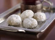 These buttery melt-in-your-mouth cookie balls go by many names in recipe collections, including Mexican Wedding Cakes. They always contain finely chopped nuts and are twice rolled in powdered sugar.