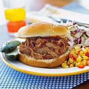 NOTE: On pulled pork, allow weight loss due to cooking. 4oz portion is finished product. or yellow scoop on two dinner rolls Generously coat butts with dry rub, refrigerate overnight, smoke or roast butts until temp of 190 degrees or pork shreds easily with fork. |