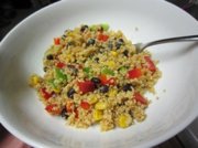 2. Combine beans, peppers, corn, onion, and jalapeno in a large bowl. Add quinoa when cooled, tossing all of the ingredients together with a fork. |