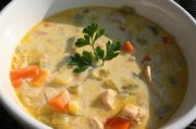 4. Note: If a thicker chowder is desired, add -- 1 tablespoon cornstarch dissolved in 2 tablespoons of cold water. Also, smash a few potatoes for thickening. |