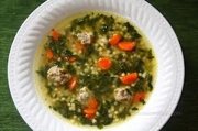 3. In the meantime, for the soup, heat the olive oil over medium-low heat in a large heavy-bottomed soup pot. Add the onion, carrots, and celery and saute until softened, 5 to 6 minutes, stirring occasionally. Deglaze pan with white wine and reduce for 1-2 minuted. Add the chicken stock bring to a boil. Add the pasta to the simmering broth and cook for 6 to 8 minutes, until the pasta is tender. Add the meatballs to the soup and simmer for 5 minute. Taste for salt and pepper. Stir in the fresh spinach and cook for 1 minute, until the spinach is just wilted. Ladle into soup bowls and sprinkle each serving with extra freshly grated Parmesan. |